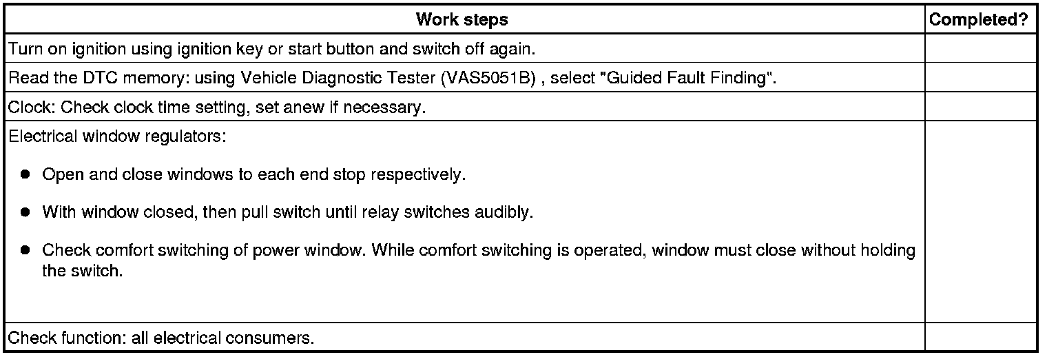 - Switch off ignition, switch off all electrical consumers and remove ignition key.