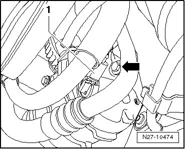 - Loosen spring clamp - arrow - using (VAS 5024 A).