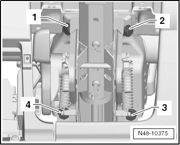 - Secure the steering column with the bolts, on after the other - 1 -, - 2 -, - 3 - and - 4 -.