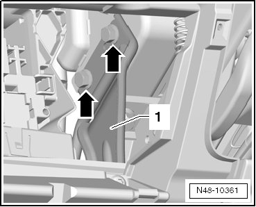 - Lower the steering column - 1 - and carefully remove it from the guide - arrow -.