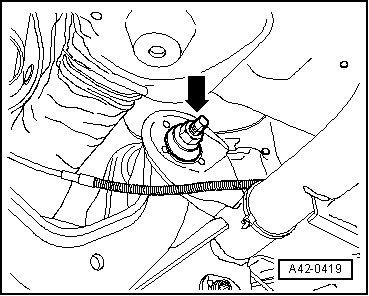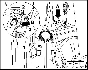 - Unhook speed sensor wiring - arrow A - from the upper transverse link.