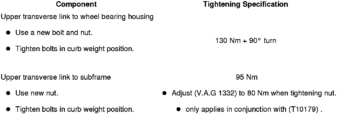 - Insert the upper transverse link into the vehicle and tighten the bolts by hand.