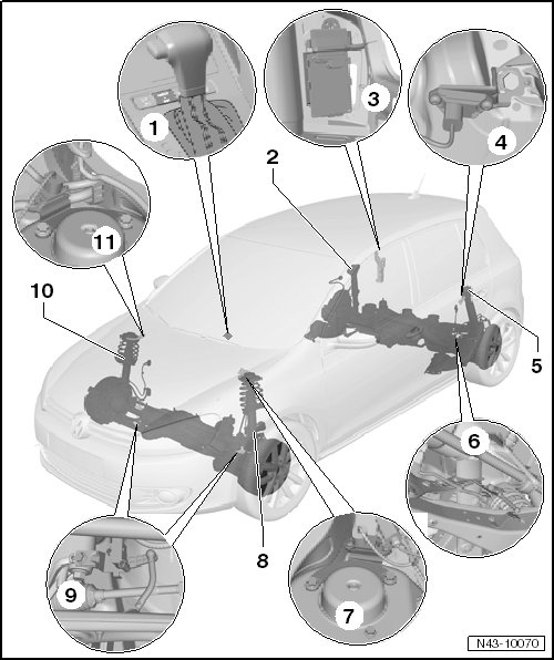 Suspension strut, servicing, refer to => [ Suspension Strut Assembly Overview ] Suspension Strut Assembly Overview.