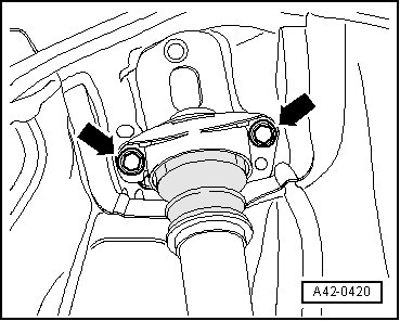 • The bolted connections of the shock absorber to the wheel bearing housing must only be fastened when the dimension "a" is achieved! Refer to => [ Tightening of the respective bolts/nuts must then only occur after dimension between the wheel hub center and the lower edge of wheel housing has been attained. ] Rear Axle, Lifting to Curb Weight Position.