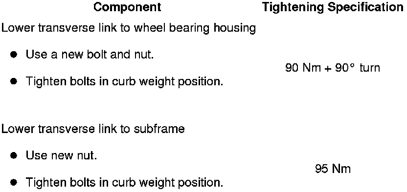 - Insert lower transverse link into vehicle and tighten the bolts by hand.