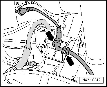 - Remove the hose retainer - 1 - on both sides of the vehicle.