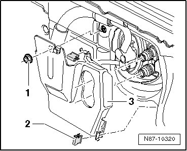 - Remove the clamps - 2 - and the heat shield - 3 -.