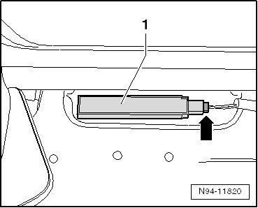 - Disconnect the connector - arrow - and remove the access/start authorization antenna in luggage compartment - 1 -.