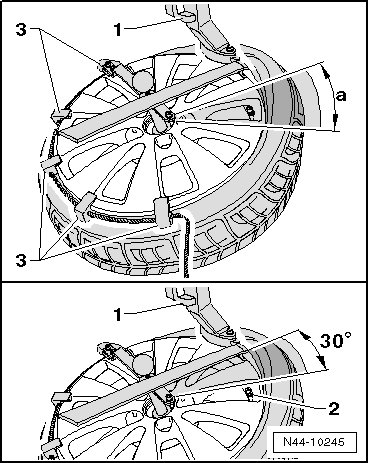 - Position mounting head - 1 - in vicinity of tire valve/tire pressure sensor so that tire iron can be put on approximately 30° next to tire valve/tire pressure sensor - 2 -.