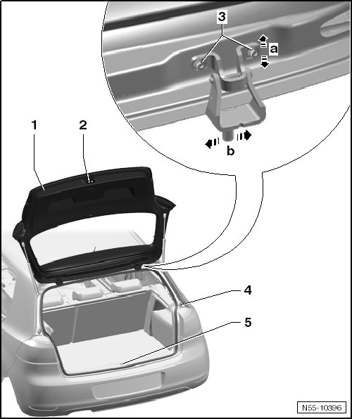 - Loosen the bolts - 3 - and adjust the rear lid - 1 - in the oversized holes in the hinge - arrows a and b -.