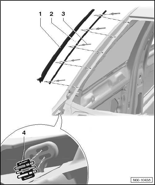Removing and installing, refer to => [ Drip Rail ] Drip Rail.