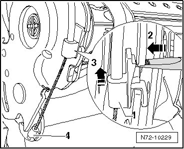 - Remove the clip - 4 - for the cable from the lower seat frame.
