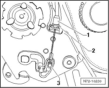 - Remove the cable bracket - 1 - on left side of the lower seat frame. To do this, release locking tab in - direction of arrow 2 - using a screwdriver and remove cable bracket in - direction of arrow 3 -.