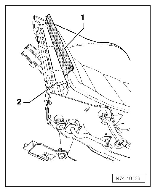 - Remove front bucket seat backrest. Refer to => [ Front bucket seat backrest, removing and installing ] Front bucket seat backrest, removing and installing
