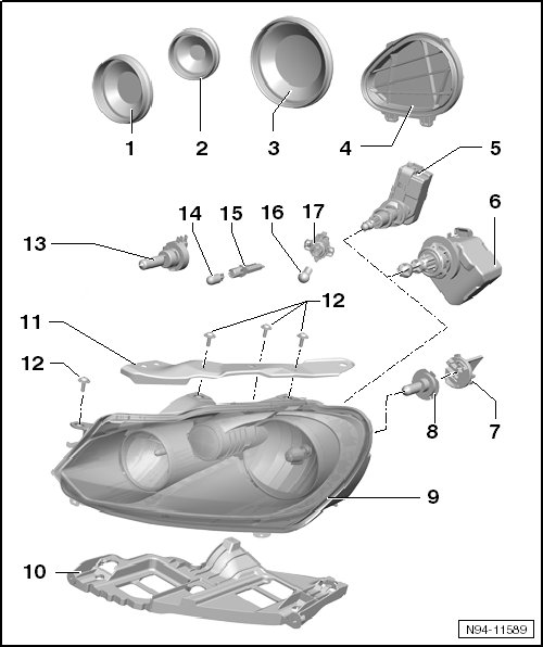 Removing and installing, refer to => [ Halogen Headlamps ] Halogen Headlamps.