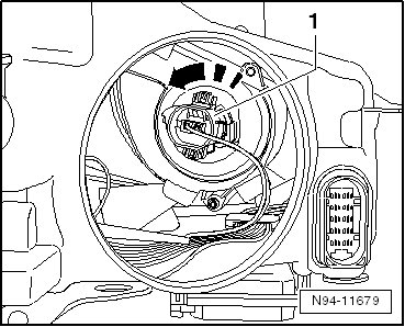 - Turn the bulb socket - 1 - in - direction of arrow - and pull it together with the turn signal bulb out of the reflector.