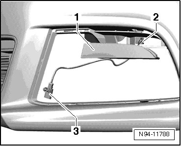 - Guide the wiring harness - 3 - through the opening in the bumper - 2 -.