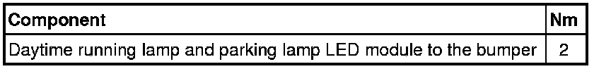 • The daytime running lamp module LED and the parking lamp are a complete single component and cannot be serviced. If the one of the LEDs in the module is faulty, then it is necessary to replace the complete component.