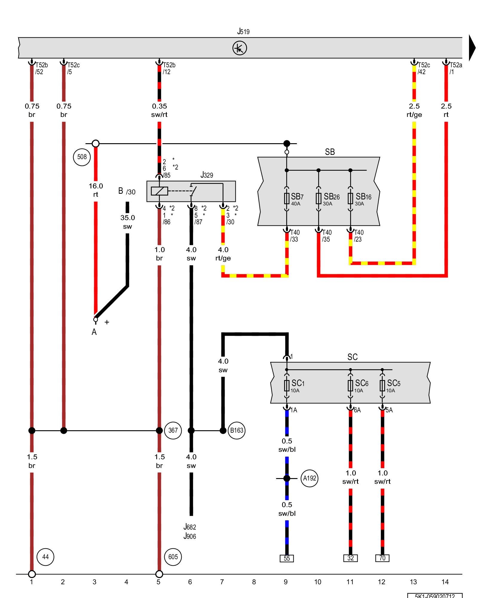 SC5 - Fuse 5 (on fuse panel C) Fuse overview (SA), (SB), (SC)
