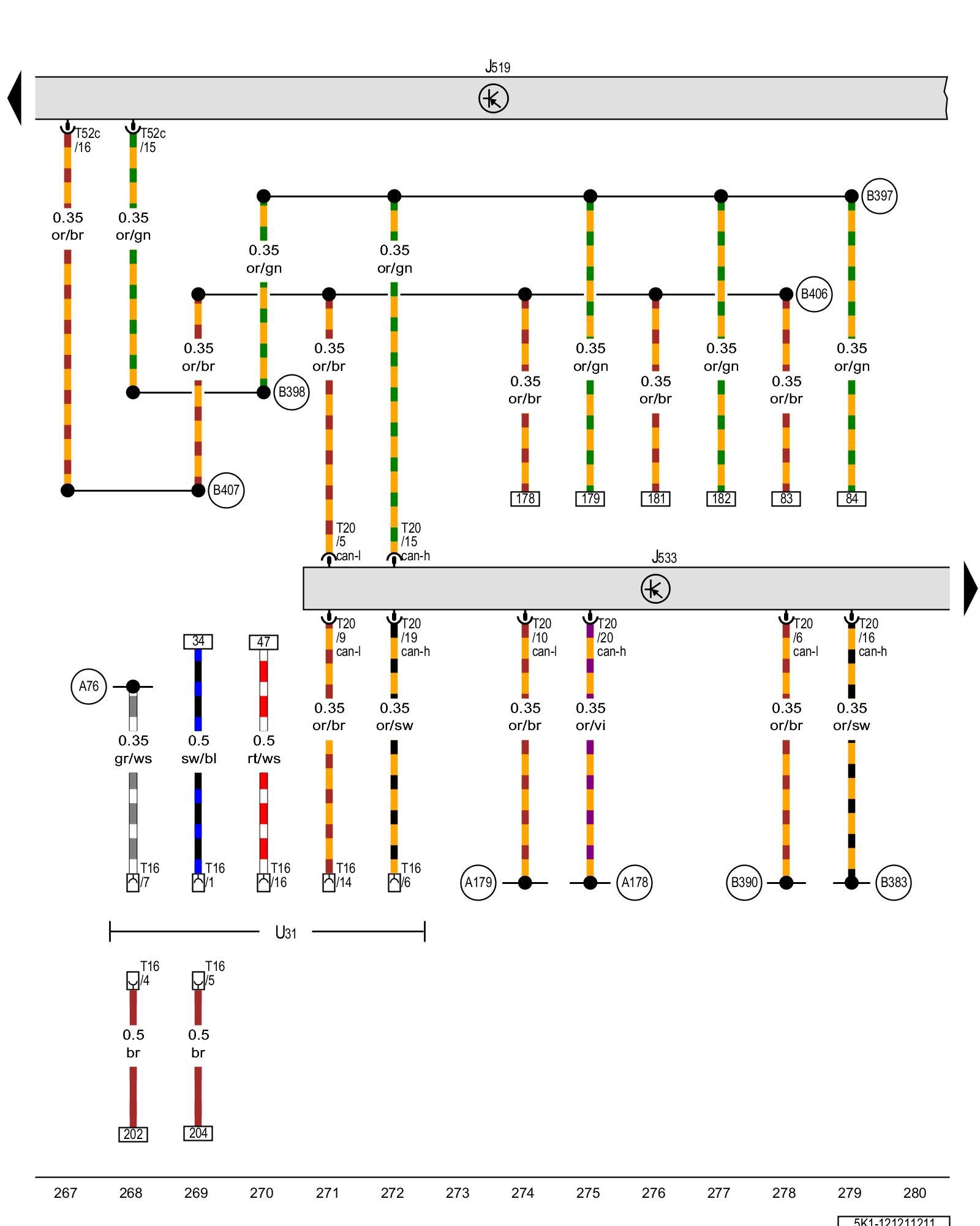 (A178) - Infotainment CAN bus high connection (in instrument panel wiring harness)