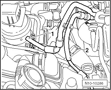 - Remove the vacuum hoses - 1 and 2 - for the charge air regulation.