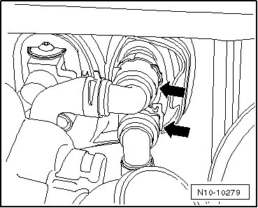 - Loosen the clamp - 1 - between the particulate filter and the turbocharger.