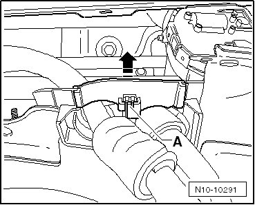- Open the quick-release couplings for the heater core - arrows - on the plenum chamber bulkhead.