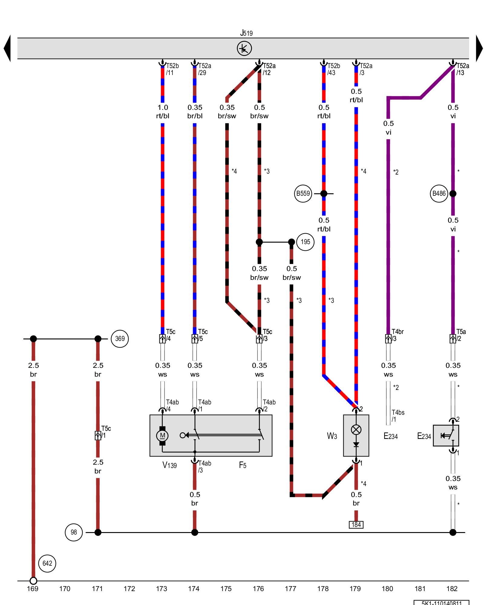 T4br - 4-pin connector, behind the right C-pillar trim panel Overview of connector stations and connectors