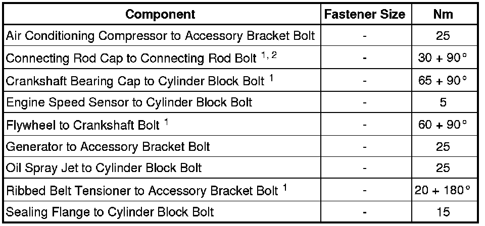 Crankshaft, Cylinder Block - Fastener Tightening Specifications
