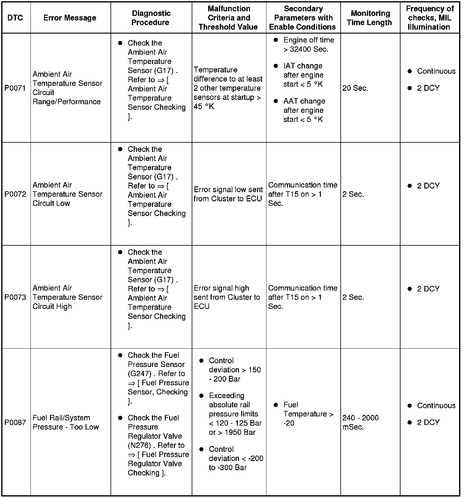 A L L Diagnostic Trouble Codes ( DTC )