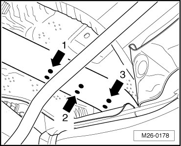 - Cut the exhaust pipe at a right angle at the separation point - arrow 2 - using for example, the body repair saw (V.A.G 1523 A) or the chain pipe cutter (VAS 6254).