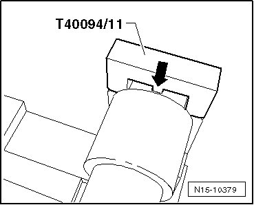 - Install the exhaust camshaft and lock it by the groove - arrow - using the cover (T40094/11).