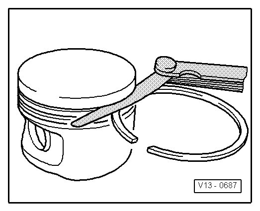 - Push the piston ring squarely from above, down to approximately 15 mm from the bottom of the cylinder.