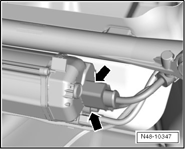 - Remove the bolt - 1 - and remove the universal joint - 2 - from the steering gear.