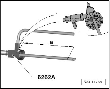 - Measure the length of the pipe, dimension - a - before installing the adapter for oil filling (VAS 6262 A) to the oil bottle and shorten the pipe as necessary. Refer to => [ Shortening the Pipe on the : ] Modifying the Adapter for Oil Filling (VAS 6262 A).