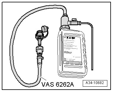 - To change containers, close the shut off lever or hold the adapter for oil filling (VAS 6262 A) higher than the transmission.