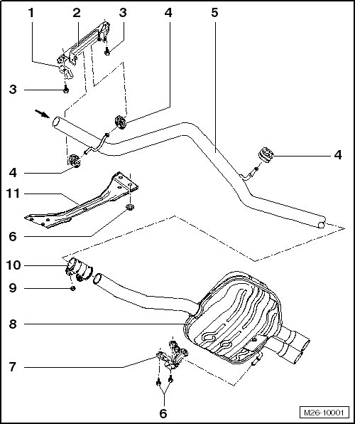 • Exhaust system separating and connecting. Refer to => [ Exhaust System, Separating and Connecting ] Exhaust System, Separating and Connecting.