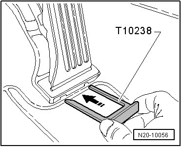 - Slide the release tool (T10238) as shown into the openings designated for it until it stops and remove the accelerator pedal module.