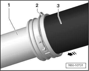 - Attach the pressure hose - 3 - into the coupling - 1 - in - direction of arrow -.