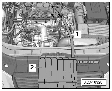 - Connect the return line - 2 - with a hose - 3 -.