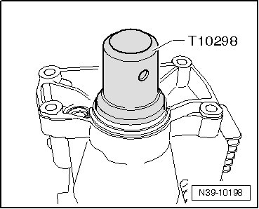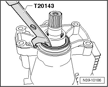 - Pry out the seal on the bevel box using the pulling hook (T20143/1) or (T20143/2).