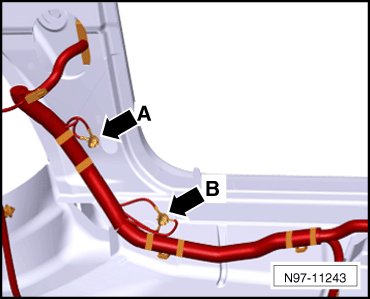 (44) - Ground Connection (on left lower A-pillar) -Arrow A-