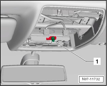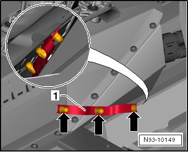 (739) - Ground connection on the right underbody -1-, potential equalization cable -arrow- high voltage battery 1 -