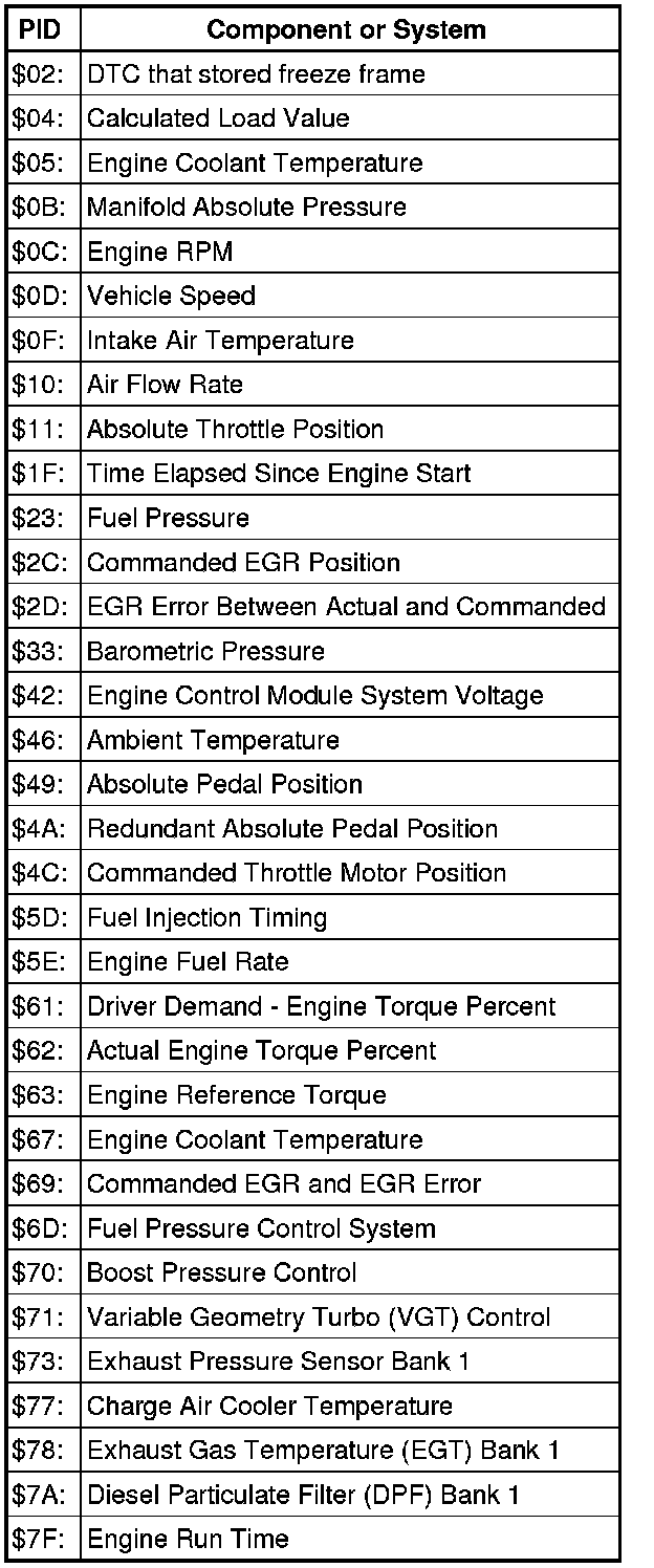 • Depending on scan tool and protocol used, the information in diagnostic mode 02 may be referred to by different names such as Test-ID, Hex-ID, Component-ID, or On-Board Diagnostic Monitor Identifier (OBDMID).