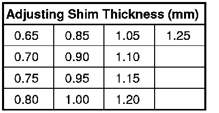 If the measured shim thickness is larger than those listed in the table, then install two shims that add up to the necessary thickness. Insert the thicker shim first.