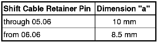 As of 06.06, smaller pin diameter for the cable retainer. Refer to => [ As of 06.06, Smaller Pin Diameter for the Shift Cable Retainer ].