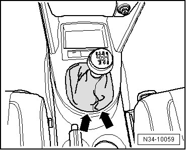 - Pull the boot upward out of the center console frame or carefully pry it out - arrows -.
