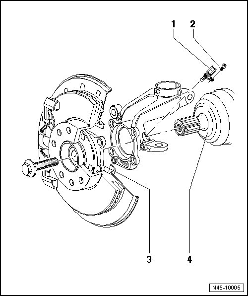 • Removing and installing, refer to => [ Front ABS Wheel Speed Sensors G45/G47 ] Front ABS Wheel Speed Sensors G45/G47.
