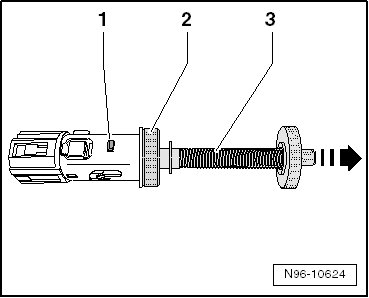 - Release puller retainers by pressing spindle - 1 - in direction of - arrow B -. Then release press - 2 - by turning slightly to left - arrow A -. Remove the puller from the outlet.