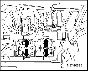 - Clip retaining tabs in - direction of arrow - outward and then press connectors - 1 - through relay carrier.
